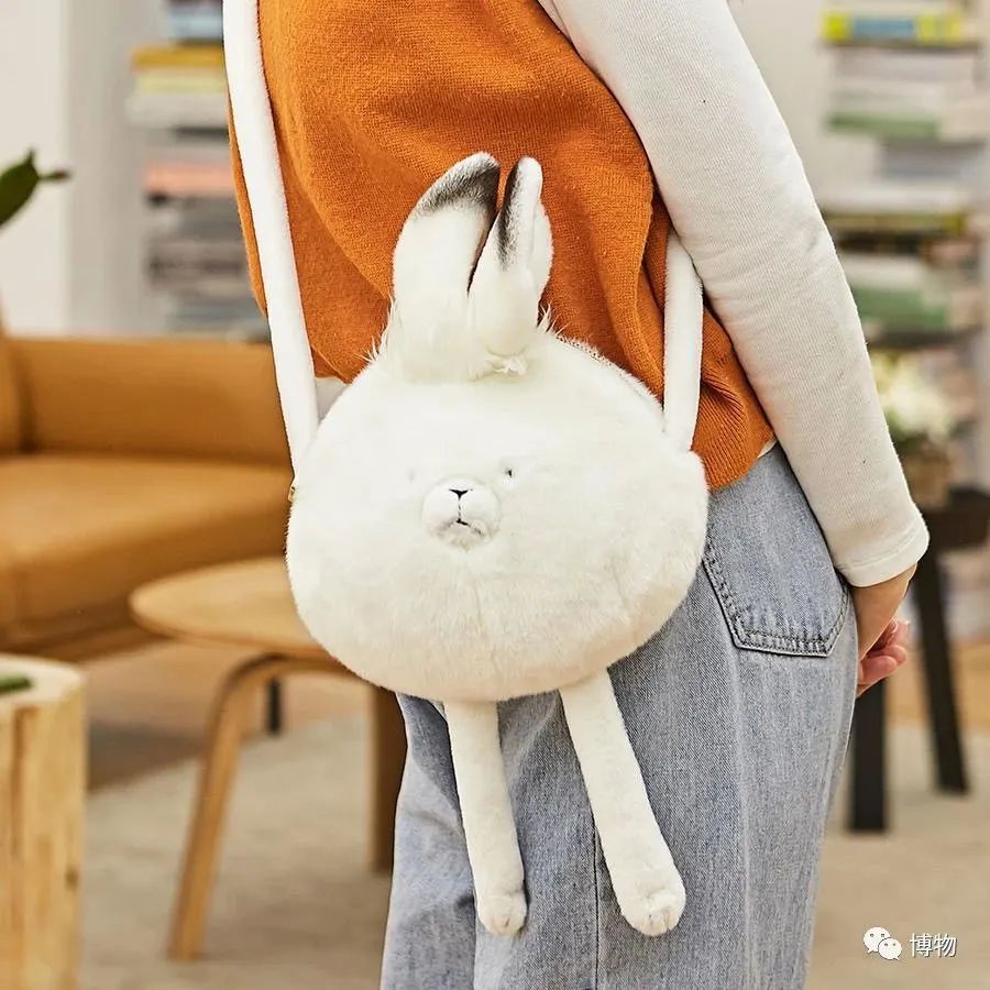以大长腿闻名的北极兔变成背包,实用又拉风,长耳朵长尾巴,没事儿rua一把。