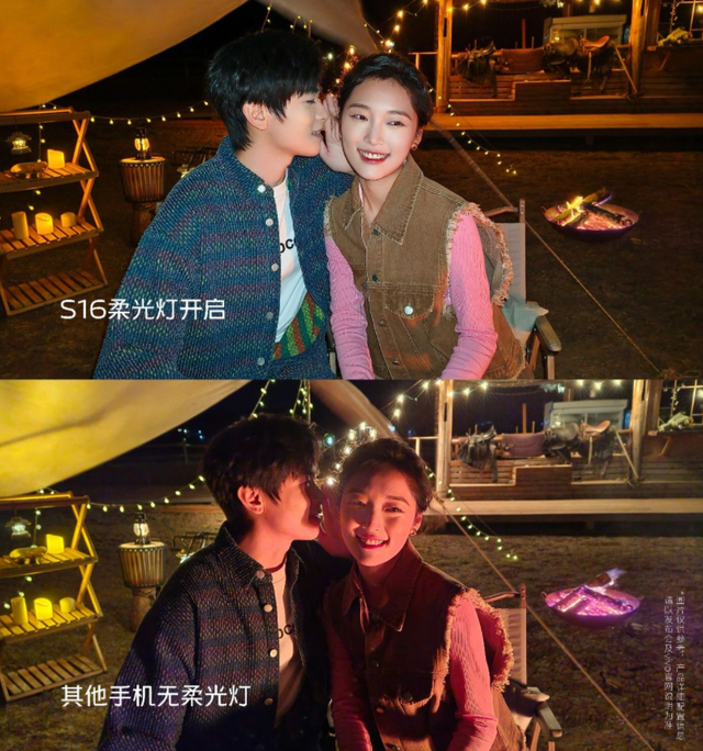 再来说说这部手机独特的亮点。熟悉人像拍摄的朋友应该知道拍摄人像照片时需要有好的光源打光,像是普通手机的闪光灯都是点光源,很难拍出有情绪感的照片。而vivo S16系列配备了双面柔光灯,背部的柔光环支持动态控光,纳米级柔光工艺,成像效果甚至能够有影棚效果。在暗光环境下,柔光灯的效果将更加明显,成像效果肤色白皙且自然,相片细节保留到位。不仅如此,vivo在正面边框里也埋了两颗柔光补光灯,自拍的时候也能有柔光效果,这颗5000万像素的前置摄像头支持自动对焦,可以快速拍出美美哒的自拍照片。