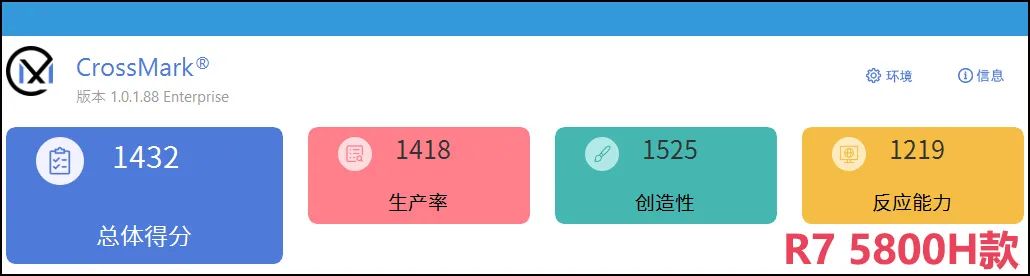 最后我们还引入了跨平台的日常应用综合测试软件CrossMark(专业版)。它将各种日常应用以后台形式进行测试并最终给出总分和三大子项得分。