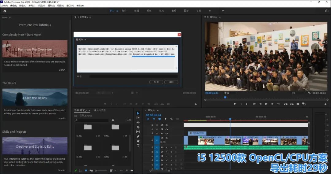 ▲Pr视频剪辑的导出环节,依然是英特尔i5 12500款启天的效率高得多,29秒vs 46秒,少耗时37%!