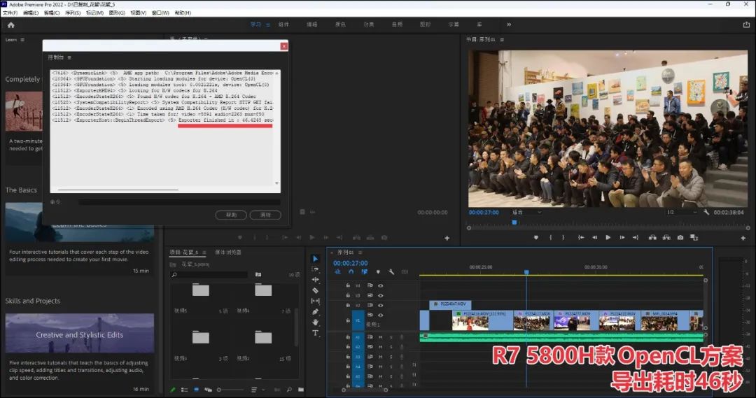 我们从一场落地活动的上百个镜头素材中,挑选出几十个,剪辑为一个2分38秒的视频,不加其他特效,看导出效率谁高。