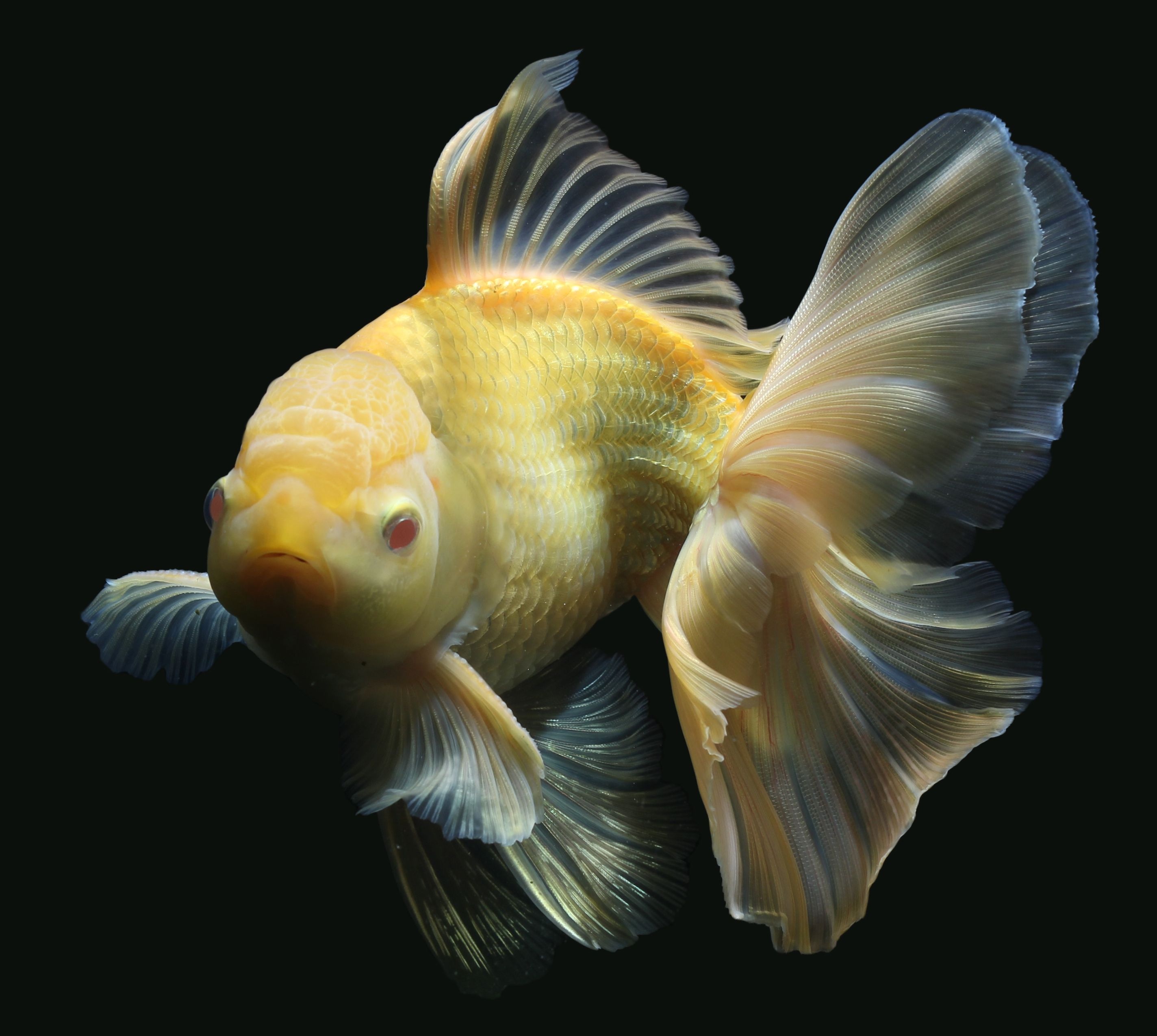 市面上常见的偏红或偏黄的百褶狮金鱼。余鹏 摄