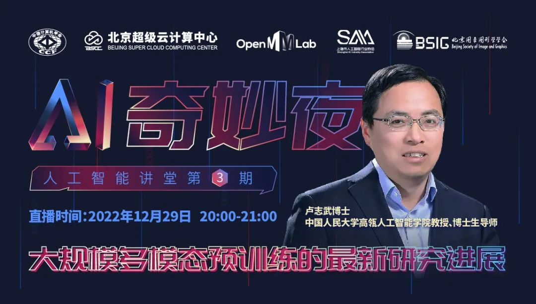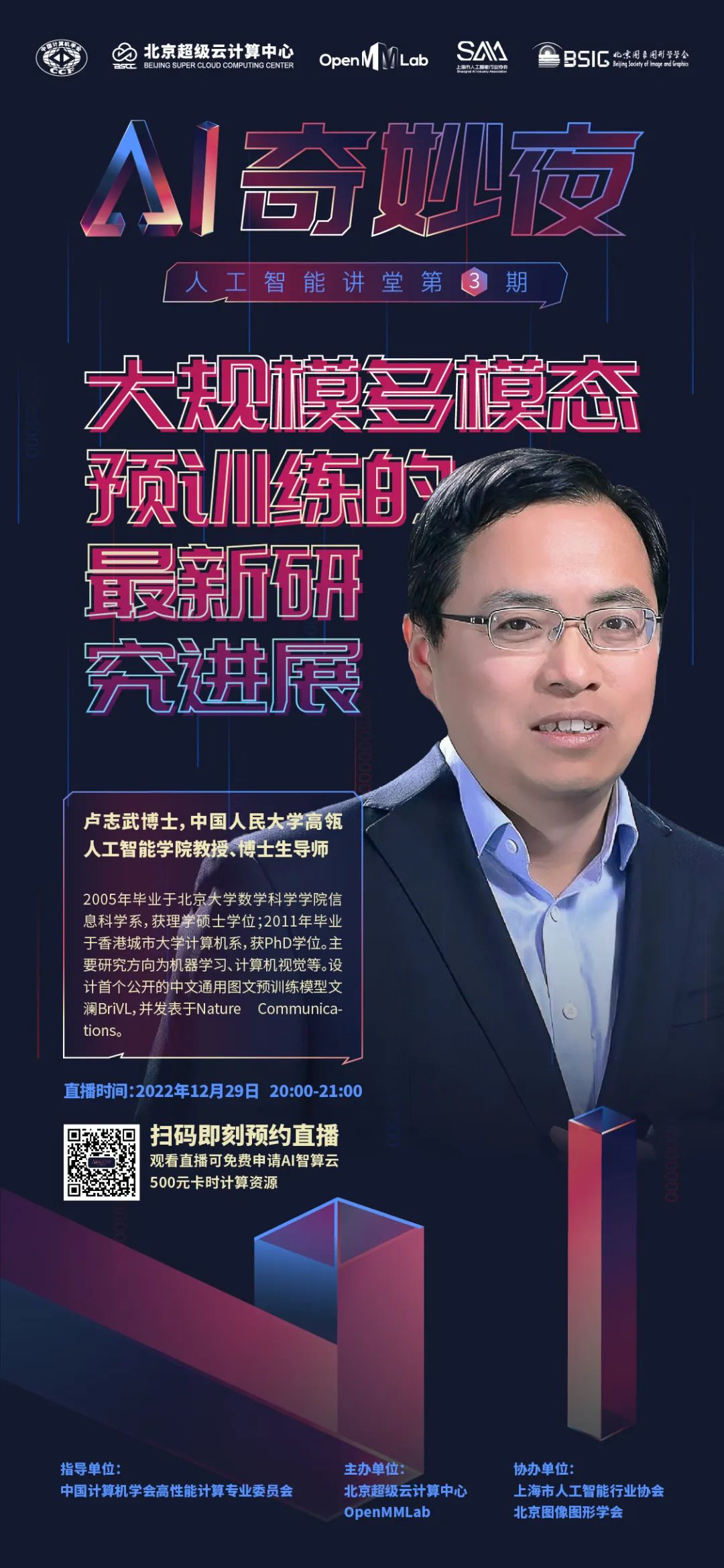 第3期AI奇妙夜,卢老师将为大家分享在大规模多模态预训练上取得的最新研究进展,并对未来发展趋势做必要的展望~