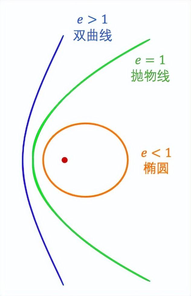 我们知道在引力作用下,天体的轨道是条圆锥曲线。如果e>1,说明轨道是双曲线;如果e=1,轨道是抛物线。这两种情况都说明轨道是开放的,这个天体是系外过客,在太阳旁边溜达一次之后就不会再回来。而如果e<1,说明轨道是闭合的椭圆,天体会周期性地绕着太阳转。