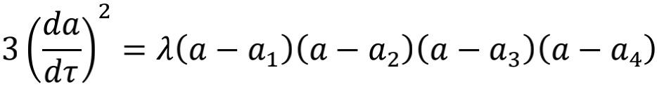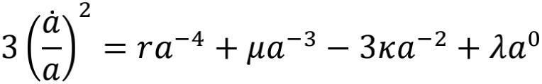等式右边的四项分别对应辐射能量密度、质量密度、曲率贡献和真空能量密度。然后再对时间标度做个转换,由坐标时间t变换成共形时间τ,二者之间的关系是: