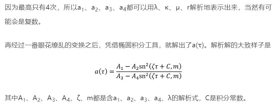sn(z, m)这个二元函数是解析解的灵魂所在,它是12种雅可比椭圆函数中的一种,性质有些像正弦函数,是个在实轴和虚轴上都有周期性的双重周期函数。所以a(τ)也就具有了双重周期性,像是定义在轮胎表面的函数一样。当然,这个轮胎表面是复平面。