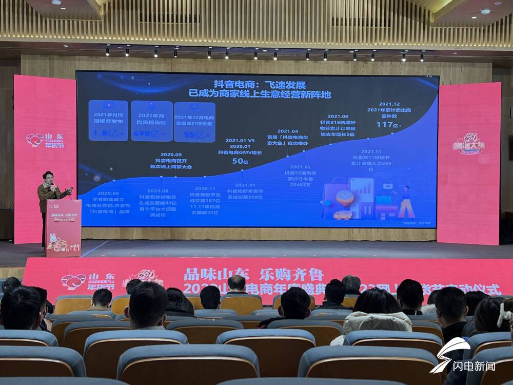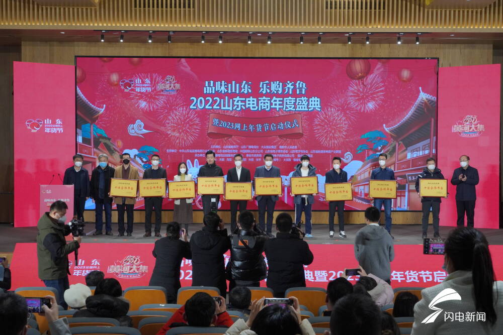 齐鲁网·闪电新闻12月29日讯 29日,由山东省商务厅联合山东广播电视台、大众报业集团主办的2022山东电商年度盛典暨2023网上年货节启动仪式在泰安举行。据了解,本次“2023年网上年货节”活动旨在全面贯彻新发展理念,深入落实山东省委、省政府促消费扩内需系列决策部署和商务部“2023年网上年货节”工作安排,抢抓元旦、春节、元宵节群体性消费热点,于2022年12月22日-2023年2月5日在全省开展。活动内容精彩纷呈,包括2022年度电商盛典暨2023网上年货节启动仪式、“吃住游娱购在山东”促销活动、平台企业线上线下促销、“百强企全民直播”大赛、山东年味“回忆杀”活动等,充分发挥电商促消费重要作用,助力消费提档升级和网络零售额快速增长。