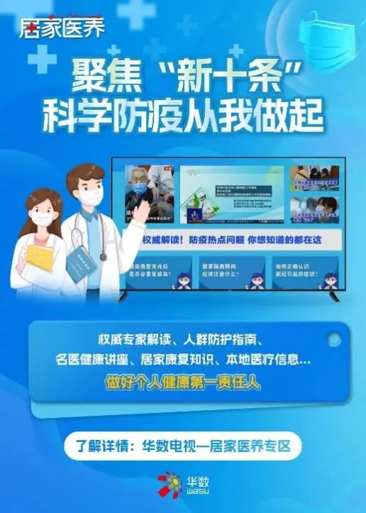 助力抗疫,为医护工作者减压。“居家医养”专区上线啦!专区整合权威媒体的专家解读、特殊人群防护指南、居家康复知识科普、本地医疗信息服务等服务类信息;集纳KEEP、乐刻等品牌健身课程,提供居家体能康复训练指导,倡导适当锻炼,增强免疫力;提供“电视淘宝”,家庭用户可在线一站式购买防疫物资,为广大居家康复的人群提供全方面的科学防疫知识和居家生活服务。