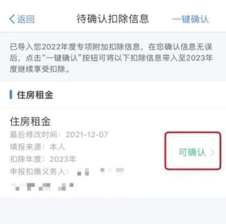 2023年还有其他继续享受的专项附加扣除,则再点击“一键确认”完成信息提交。