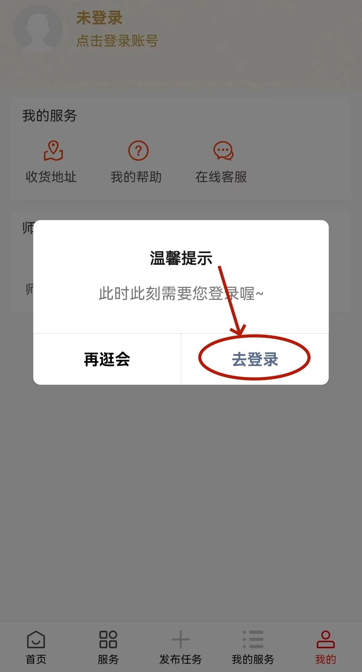 - 点击“我的”--进入登录页面 -