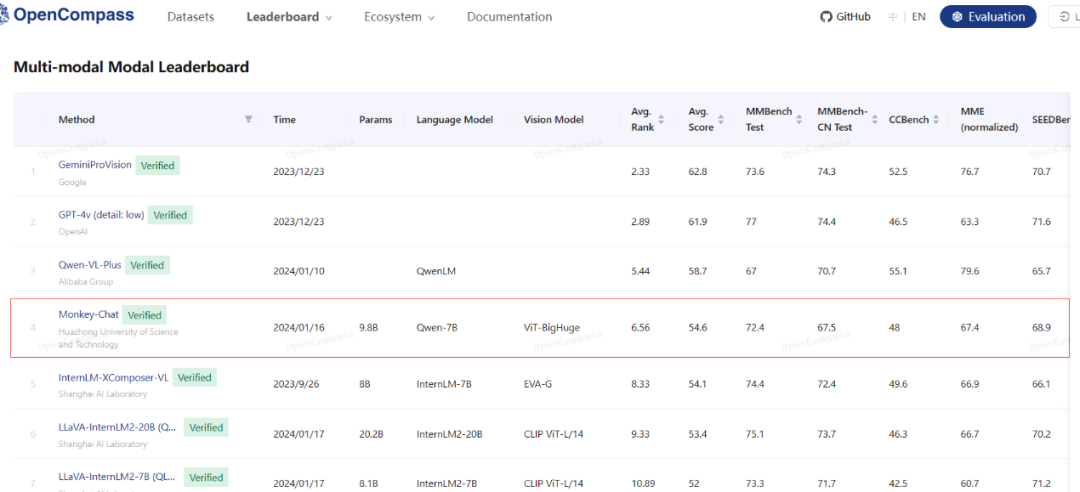 近日,我校和金山办公的研究人员开发的Monkey多模态大模型被人工智能领域的国际顶级会议CVPR 2024接收。这一成果还曾在Meta AI公认的国际权威“司南”多模态大模型排行榜中名列开源模型榜首,仅次于行业领先者OpenAI的GPT4V以及谷歌的Gemini等闭源模型。
