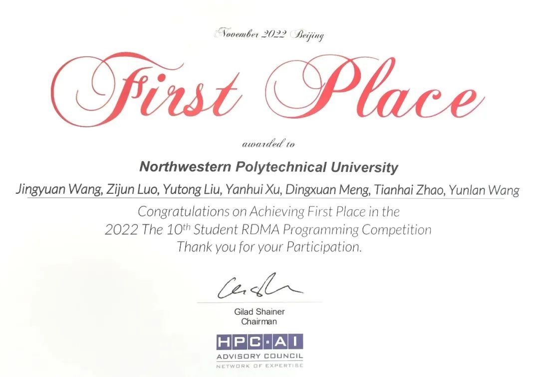 近期,第十一届亚太区RDMA编程竞赛的最终结果在CCF全国高性能计算学术年会(HPCC 2023)揭晓,西工大计算机学院高性能计算中心指导的西北工业大学参赛队荣获本届RDMA编程竞赛唯一的一等奖,也是继去年获得冠军后,再次摘冠!截至目前,我校在该项赛事中已经四次荣获一等奖。