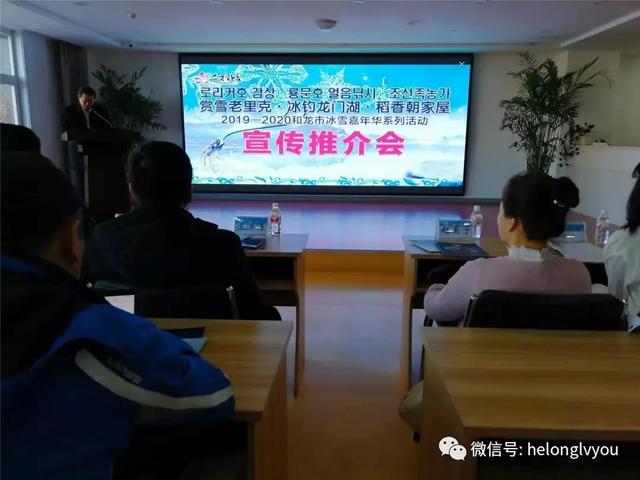 2019-2020和龙市冰雪嘉年华系列活动宣传推介会于12月23日在市图书馆举行。和龙市人民政府、市政协、八家子林业局、市委宣传部、市文广旅局(体育局)等相关领导应邀出席会议,省内主流媒体记者、旅行社代表、和龙市钓鱼协会相关负责人应邀参加会议。