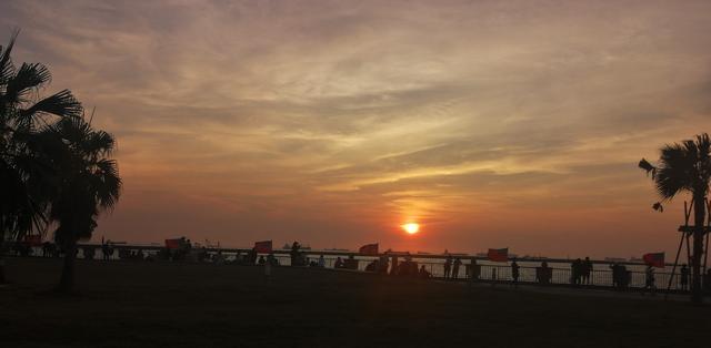 打狗领事馆对面就是著名的高雄港,来往船只并不多,没有想象中的那样繁华。在此逗留一小时后步行去西子湾看大海和晚霞。几分钟的路程。西子湾的位置在高雄市的西隅,位于高雄市西侧,高雄港旁、寿山西南端的山麓下,是一处由平滩和浅沙所构成的海水浴场,以及以夕阳美景及天然礁石闻名的海湾。南端伸入海里的一座不高的小山峰上就是旗后灯塔,在夕阳的映照下很是入画。这里也是台湾八景之一“西子湾夕照”的所在地。海风阵阵,椰林摇曳,一派别样风情。