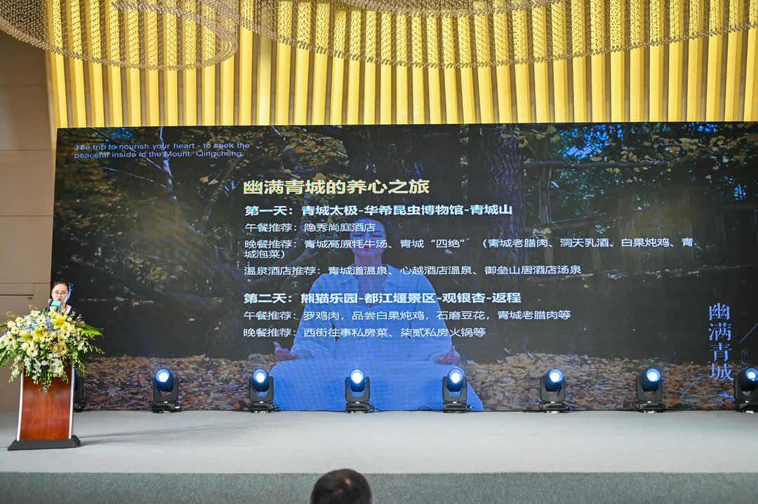 随后,成都市文旅推介员作成都冬季文旅线路现场推介。此外,参会人员还作了成都西岭雪山第20届南国冰雪节冬季文旅项目推介及都江堰-青城山景区推介。