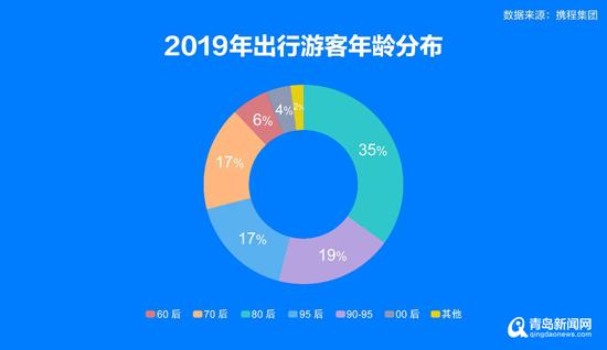 《报告》显示,2019年通过携程预订产品的用户中,80后以35%的占比,排在第一位,其次是90后(90-95),所占比例为19%,95后升至第三位,占比达17%,90后和95后占比为36%。而70后、60后、00后占比分别为17%、6%、4%。