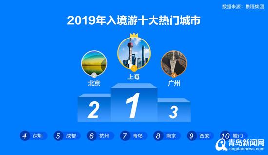 中国不仅向全球输出最多的游客,还吸引到海外游客前来旅游。《报告》指出,青岛、西安等特色明显和历史文化底蕴深厚的目的地,越来越受外国游客青睐。在2019年入境游十大热门城市中青岛排名第七,上海、北京、广州位列前三甲,深圳、成都、杭州、青岛、南京、西安、厦门等城市紧随其后。
