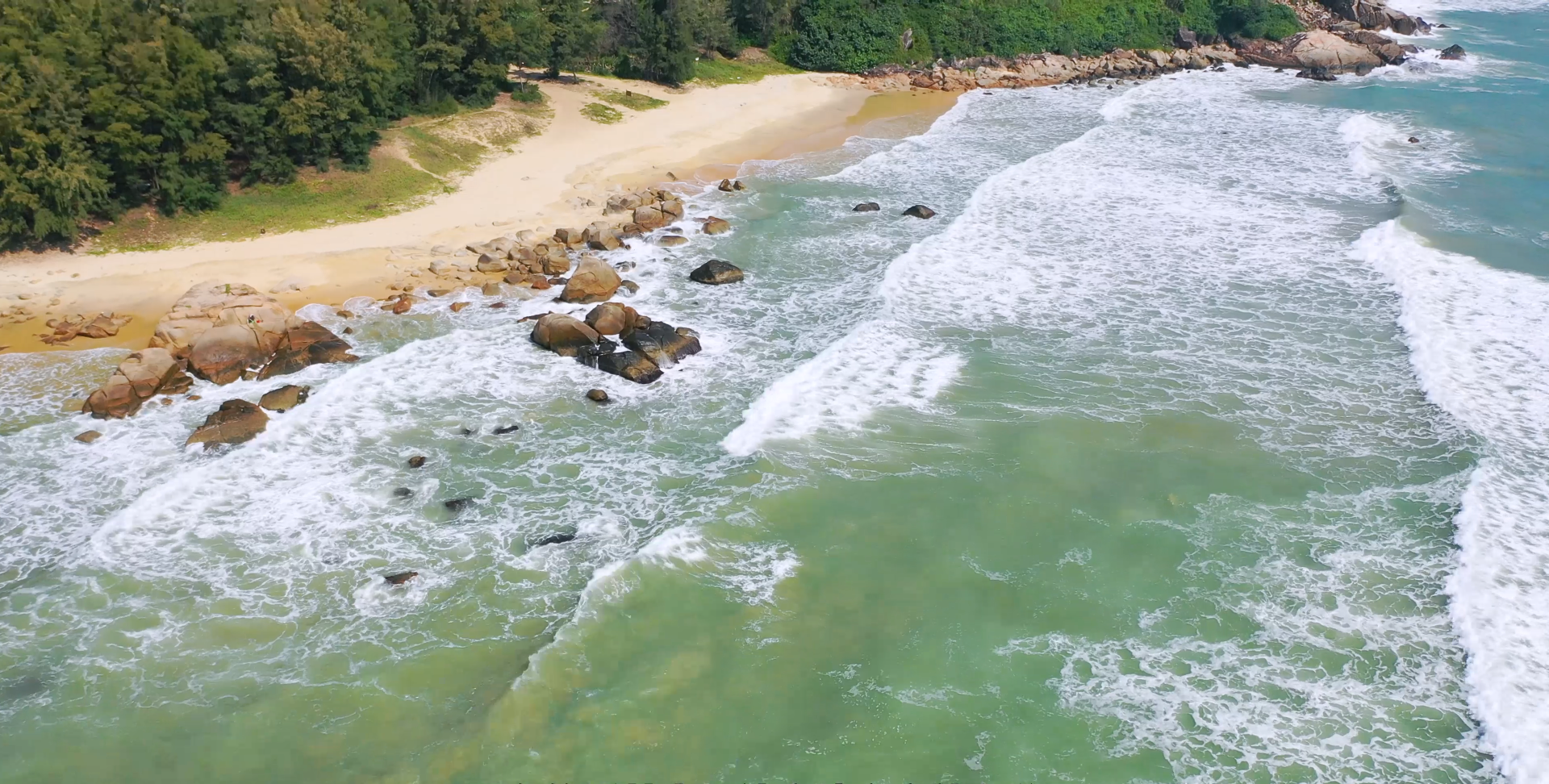 “青皮”又名“青梅”,石梅湾中的“梅”源自于此。湾中青皮林带狭长蜿蜒,沿着海滩绵延几公里,呵护着两弯新月形的海滩。石梅湾由此得名。