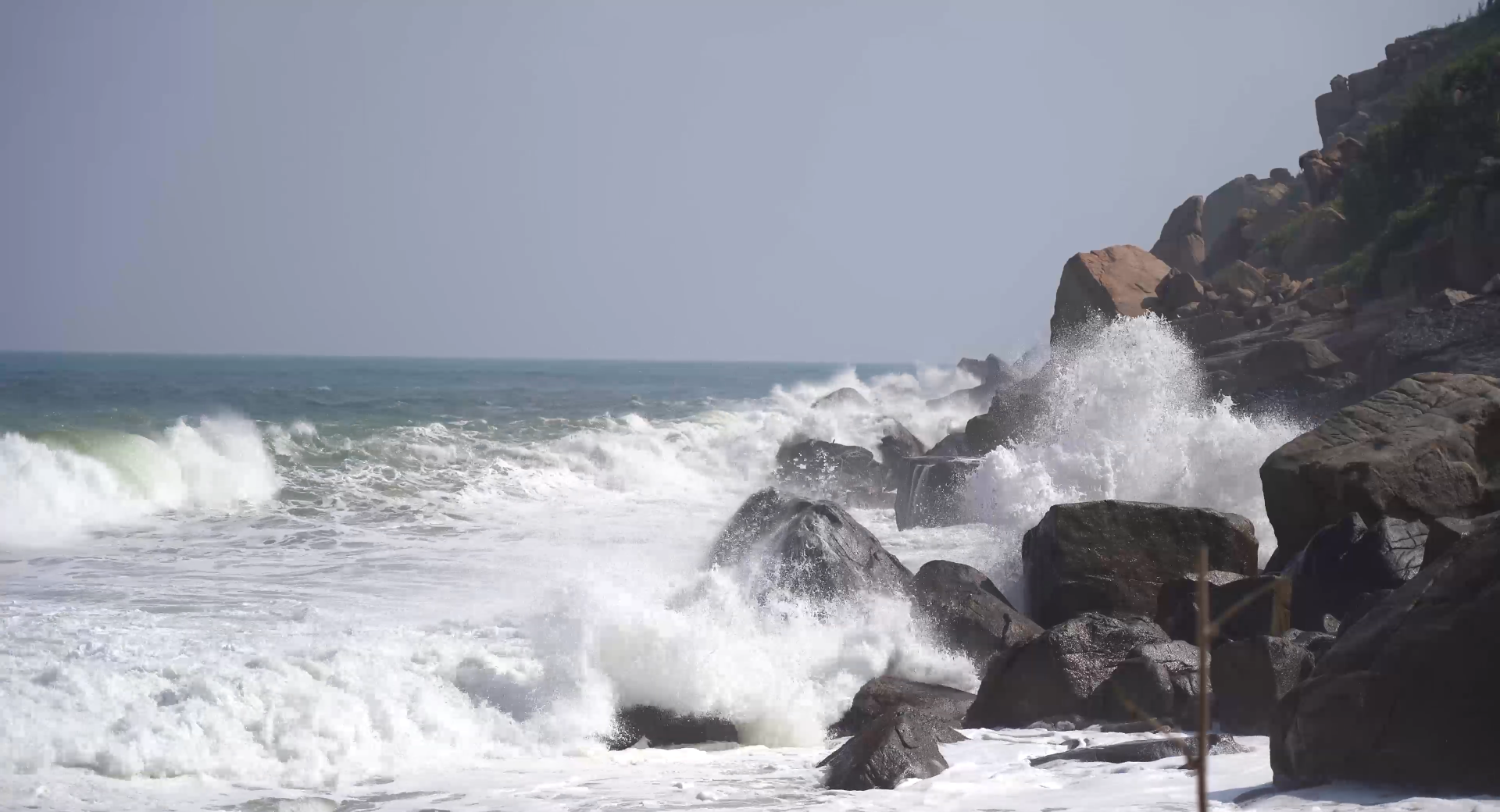 这里可不再是静谧的海域,沙滩变成了卵石,似乎是海浪的天堂,争先恐后比比谁拍得最响。