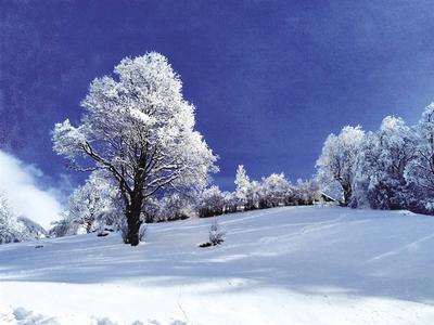 一路之上,随着车厢缓缓移动,满目四处流泻的银白,如海浪般翻滚。缀满了洁白雪花的苍松,覆盖着皑皑白雪的小木屋,高耸的缆车架及远处蓝蓝的天,与显露圣洁光辉的雪山构成一幅唯美的图案。呼吸着略带凛冽的新鲜空气,心旷神怡。