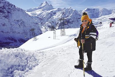 当天虽然不是节假日,户外运动者却也不少,身穿五颜六色滑雪服、脚踏滑雪板的人们,潇洒地穿梭在雪山的各级滑道中,把这雪山装点得更加绚烂。他们大多是和家人或朋友一起驱车前来,车顶上带着全套滑雪用具,身上全副武装地来这里滑雪。听导游说,欧洲人往往从童年时期就开始学滑雪,那种从山顶冲下去的感觉,是一种富有刺激的享受。