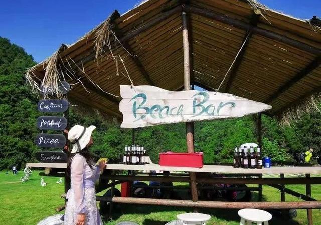步入公园首先映入眼帘的,便是这个户外酒吧。冲浪板、木质门牌、废弃酒瓶......颇有野外度假的感觉。