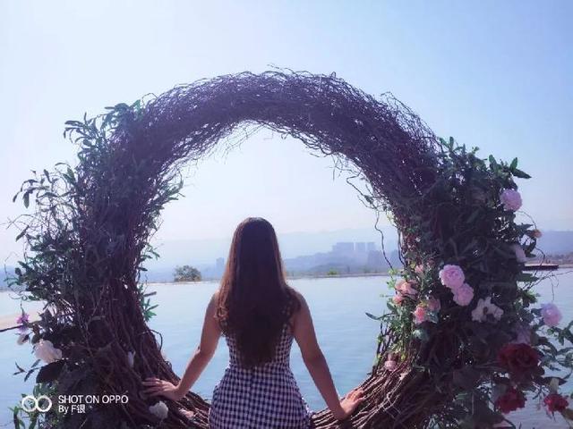 它号称重庆版“巴厘岛”,拥有旋转天梯、水上秋千、鸟巢、透明玻璃球,这个季节还有粉黛花海。