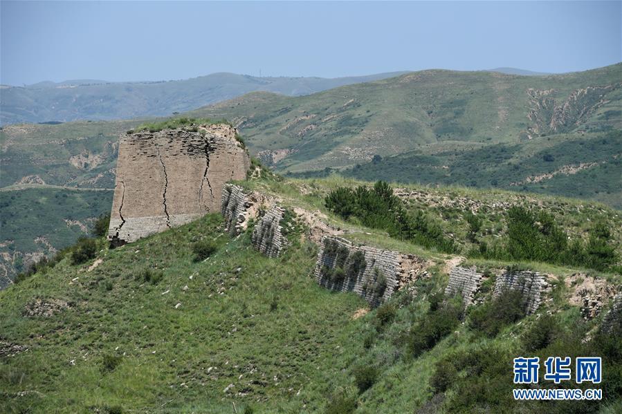 这是7月25日拍摄的栜木塔长城。 在内蒙古呼和浩特市清水河县东南部,分布着长155公里的明长城,这段明长城保存完整、规模浩大,特别是以栜木塔村为中心东西方向长10余里的栜木塔长城更显气势宏伟。 新华社记者 彭源 摄