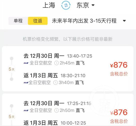陈超是一名旅行爱好者,一直筹划春节去日本旅游,所以关注从国内飞往东京的机票。11月11日,陈超开始在飞猪上查看早已关注的全日空促销,“全日空双十一之前就做过活动通告了,也发出了很多优惠券,过了零点我在飞猪搜索就看到了800多块上海往返东京的机票,毫不犹豫就下单了”。陈超明白,自己买下的这套机票,平日里非促销价格在4000元左右,“800多元的价格也不是非常低,只是提前三个月能有确实比较罕见”。