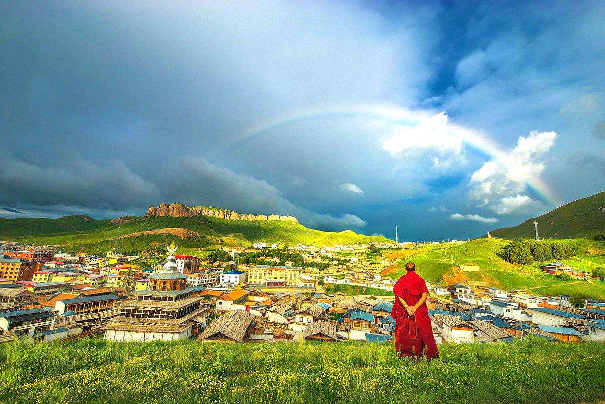 这里还有很多的寺庙,在这里,我们会体验到藏传佛教之地,在来到这里,就会觉得充满着学问和知识。能够学会很多道理,在这里我们会有一种安静,反思的力量,这里让我们抛下很多平日里的负担,只是在这里静静的思考,想一些平日里我们遇到的问题。这里的大寺有5个。在蓝天下,我们看到远处的美景和寺院建筑合为一体,感觉到这里是一个尤其美丽而且神圣的地方。