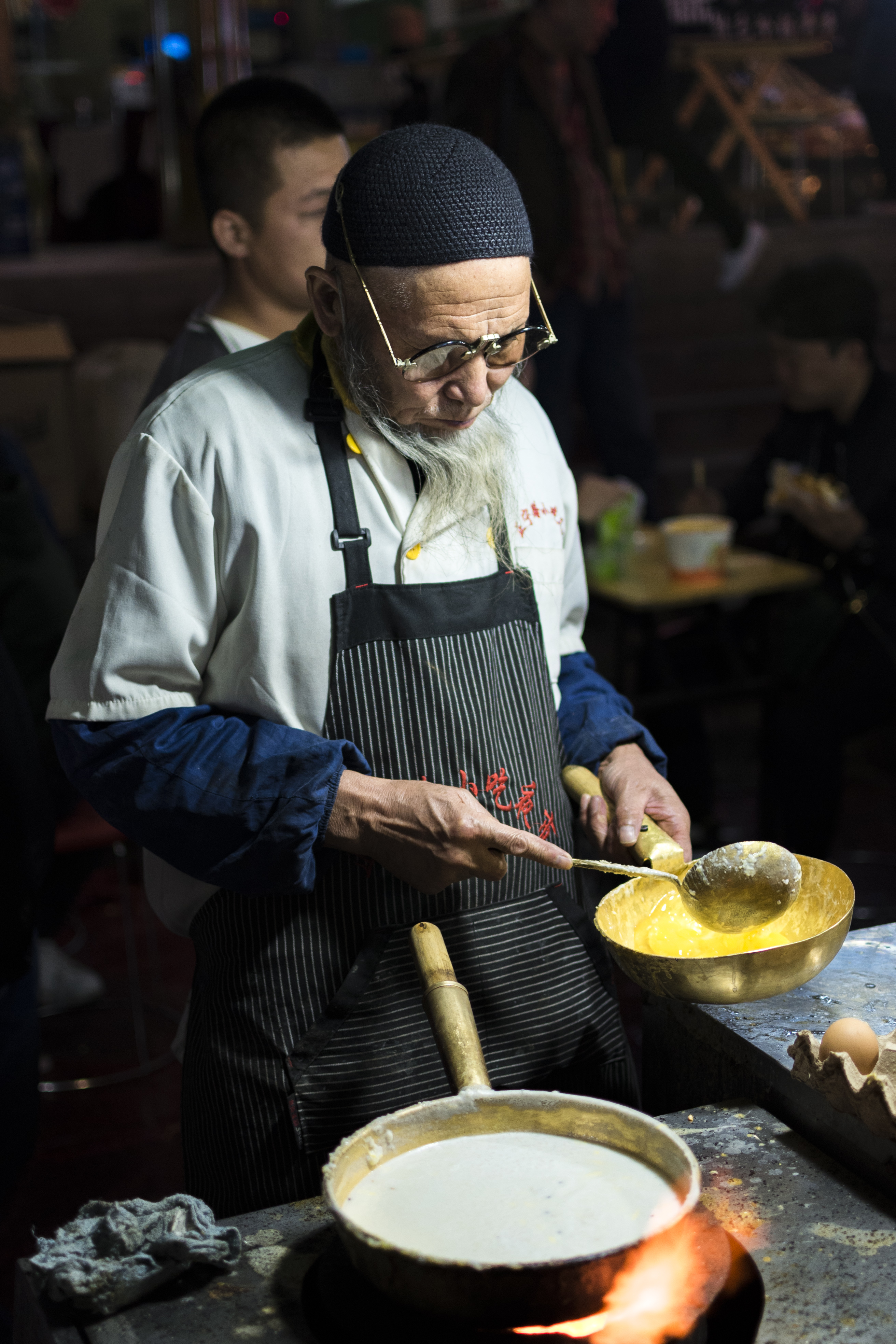 这个老大爷就是上过舌尖中国的师傅,别看年纪很大一手操作可是灵活的很。