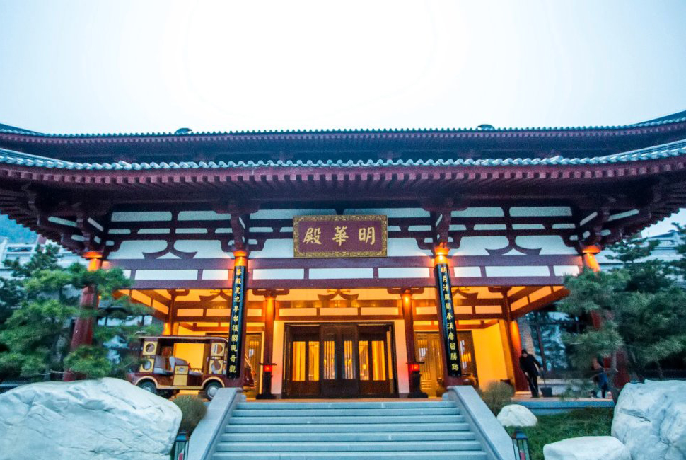 酒店入口为华清宫景区西门,最简洁的办法是告知司机去骊山索道处,酒店的正大门就在索道处。步行过去也就5分钟很便利! 明华殿装修非常豪华高档,皇家气派,唐韵元素贯穿每个细节。