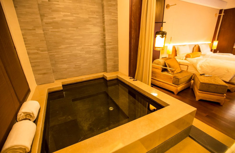 客房的功能区域分布,触按式的智能控制,实木家具,高支棉质床上用品,蓬松柔软的枕被,金可儿的舒适床垫,在泡完温泉后,可以期待一晚温馨的睡眠!