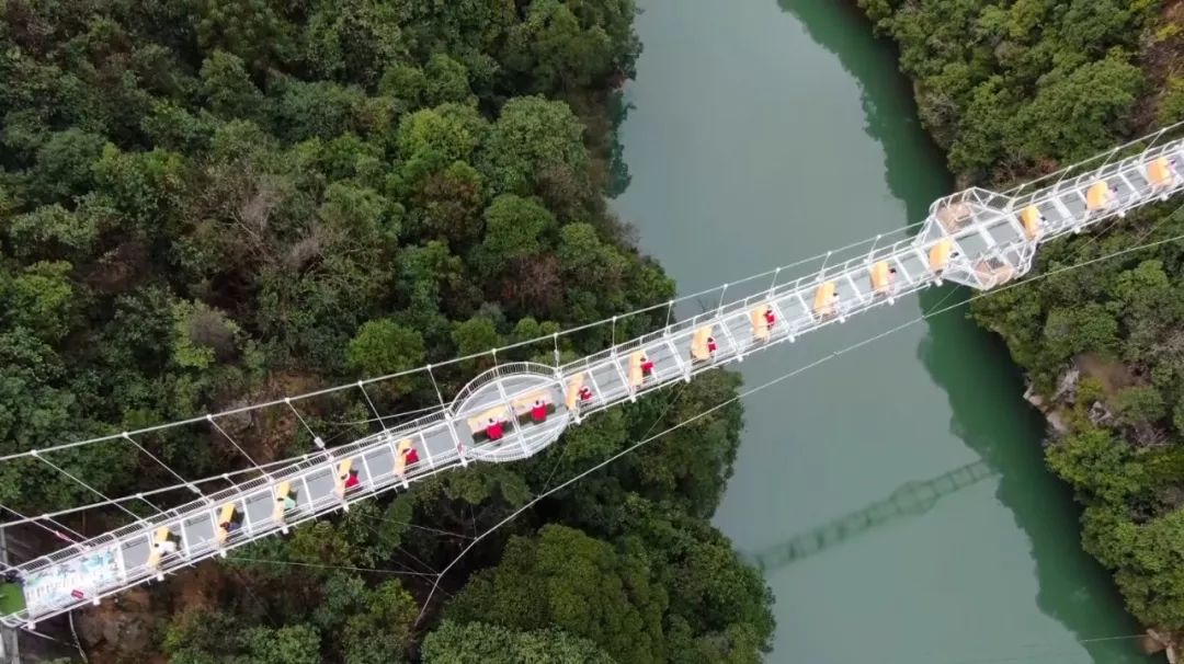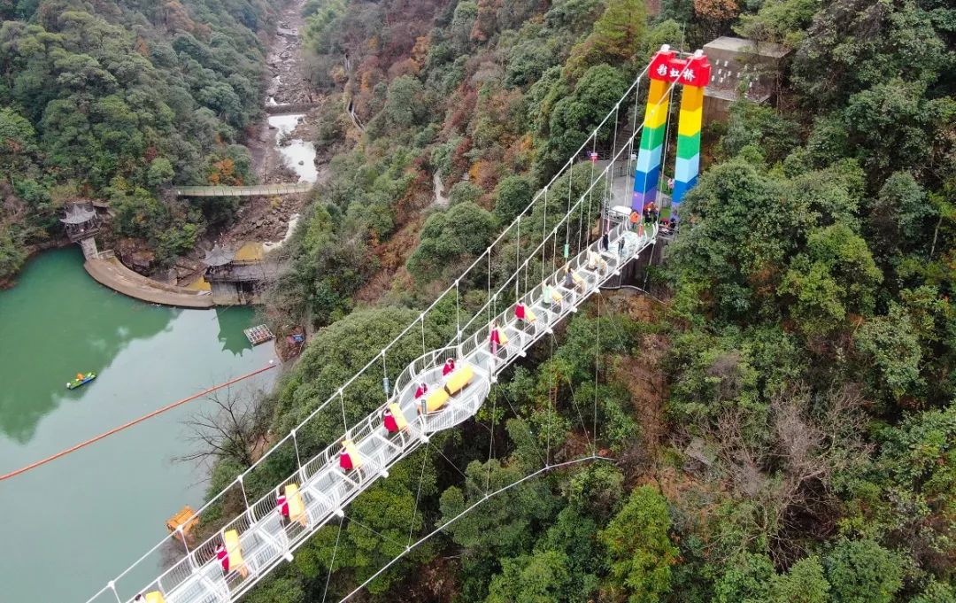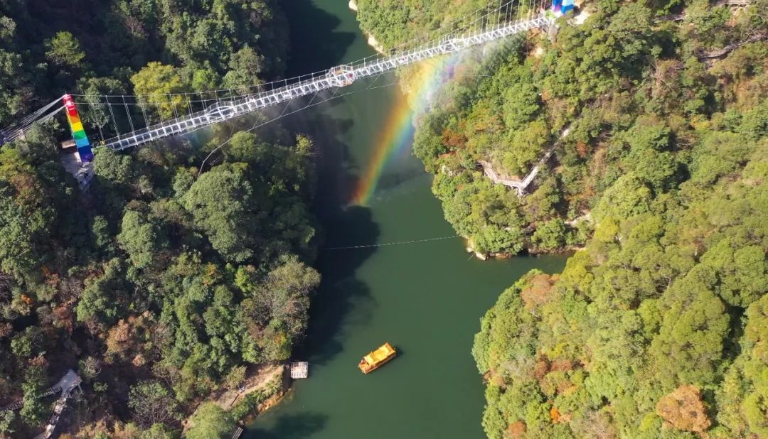 为全国首座架在彩虹上的玻璃桥,也是全国落差最大的水上观彩虹玻璃桥
