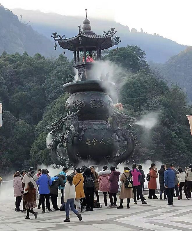 三清山乾坤定鼎,全世界最大的吉祥丹炉,鼎高11.99米, 青铜36.9吨,四面八方16条青龙,12生肖,八卦环绕,意喻“好运天长地久”,主体形制为“驷龙抱鼎”,护佑着四方来朝的信众可享 “福寿康宁”。在丹炉底下站一站,求福禄,求健康,求平安,求姻缘,求功名,万福可得。