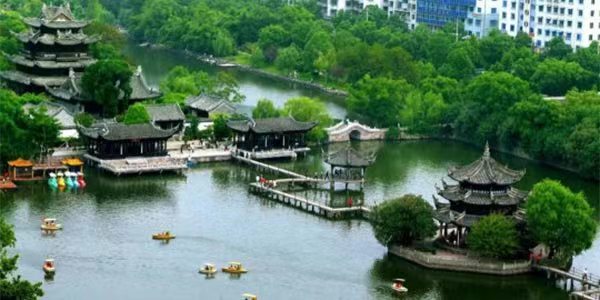这是一座典型的江南园林,面积不大,仅280多亩,却胜在一个“秀”字。水榭亭台,充满了历史风情,康熙年间的湖心亭、临水透亮的半勾亭;线条明晰的九曲桥、苏式风情的廊桥……一步一景,步步皆景。