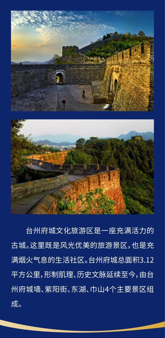 据介绍,台州府城文化旅游区位于临海市古城区,总面积3.12平方公里,包括台州府城墙、紫阳古街、东湖公园、巾山、龙兴寺等主要景点。这里是首批诗路黄金旅游目的地,古往今来无数文人才子不吝笔墨,留下传世诗篇无数。《中国诗词大会第四季》《航拍中国第二季》也都通过镜头向全国人民传递展示台州府城的美丽。2022年中央广播电视总台跨年晚会更是走出北京、走出演播厅,走进台州府城,千年古城在现代的熠熠星光下穿越古今。