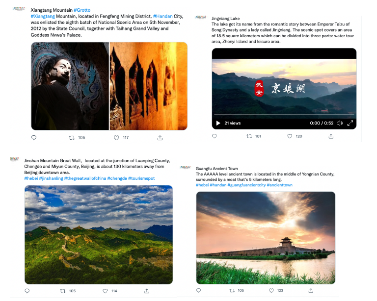 与之相反,有些文旅账号是贴文评论分享量与点赞量不成比例。例如,有点赞量高于1万的Facebook贴文,却几乎没有分享和评论。有点赞量较高的Twitter贴文,但是只有1—2次分享并且无评论。