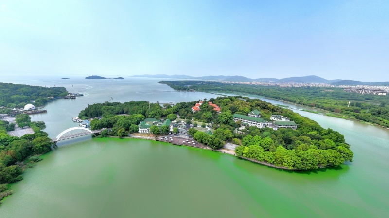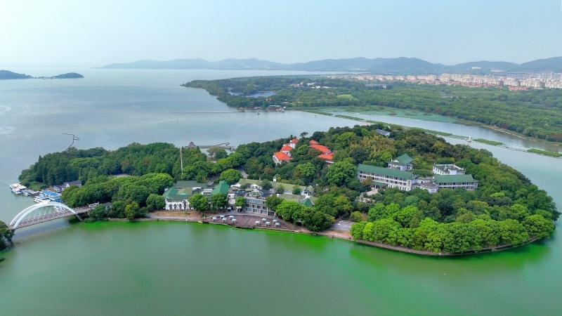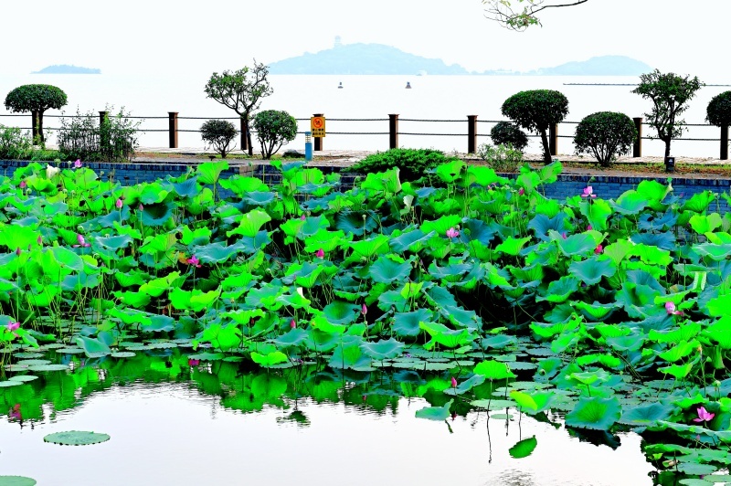 今年亦是如此,趁着在中犊山太湖工人疗养院体检休养之际,闲暇时每天少不了会来到荷塘,吹吹湖风,扶栏远眺三山岛,围着荷塘边转一转,歇一会儿。