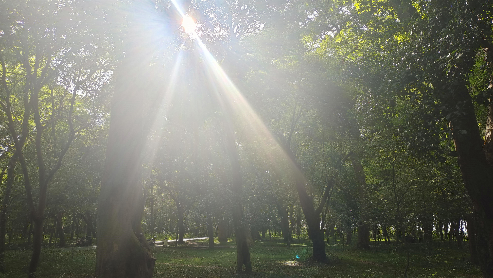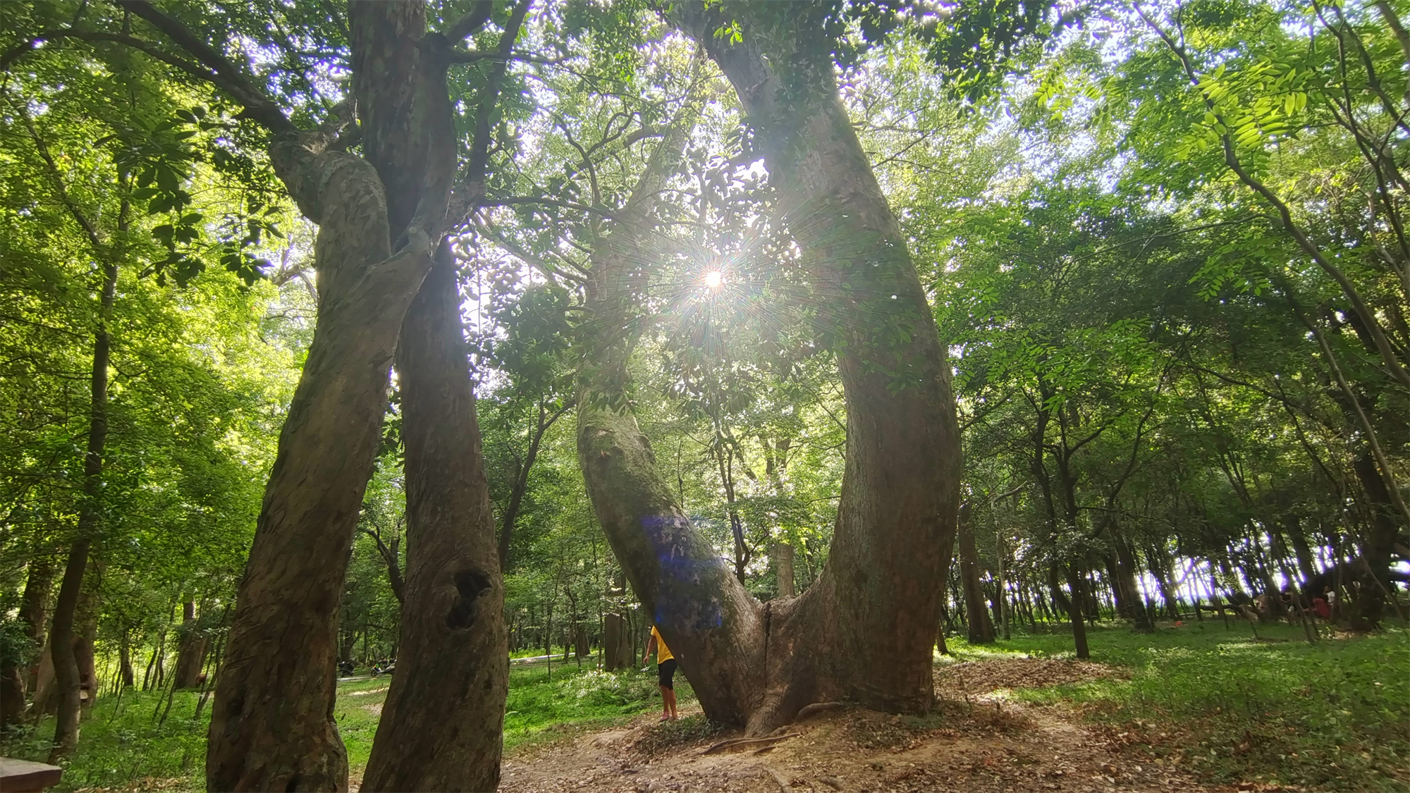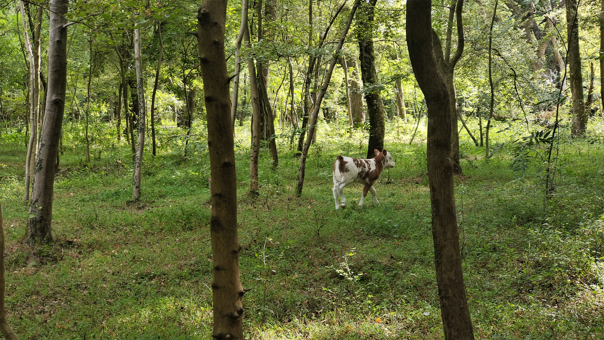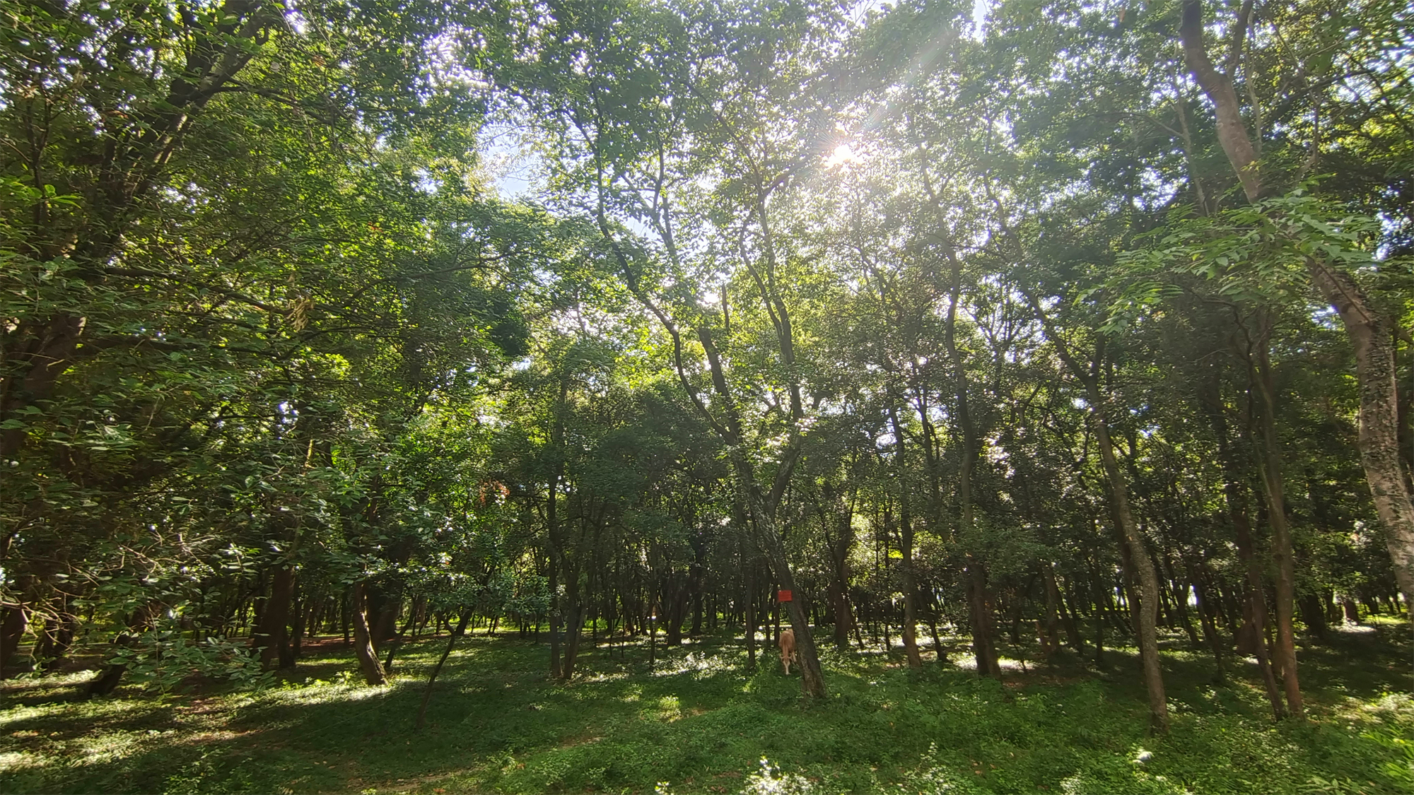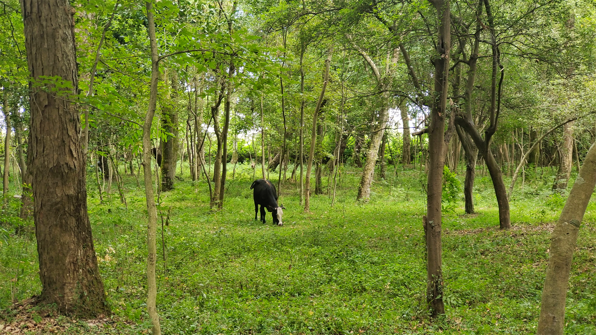 走进金滩古林,仿佛进入一个世处桃源。林内古木参天、郁郁葱葱,阳光透过浓密的枝叶洒下一串串斑驳的光影,牛群悠然自得地在林中休憩玩耍。这里是摄影师的天堂,只要你拿起相机,怎么拍都是美丽的风景。