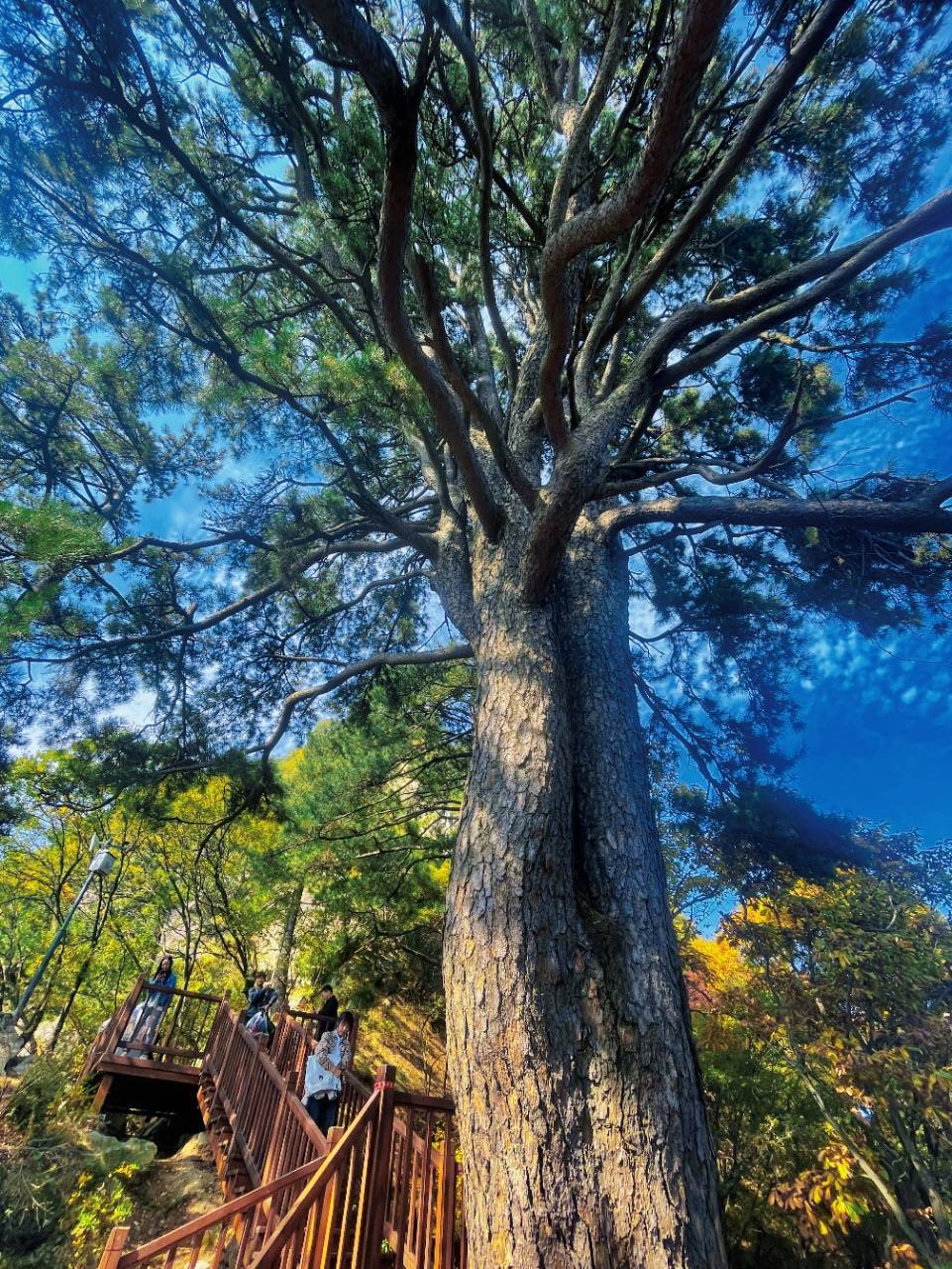 灵应台南坡下的那一棵南山不老松,就是《诗经·小雅·天保》中“如月之恒,如日之升,如南山之寿,不骞不崩。如松柏之茂,无不尔或承。”的真实场景。粗壮的树干与繁茂的枝叶仿若遮云蔽日一般在树下隔绝了一方小天地,经此千年却也傲然挺立。