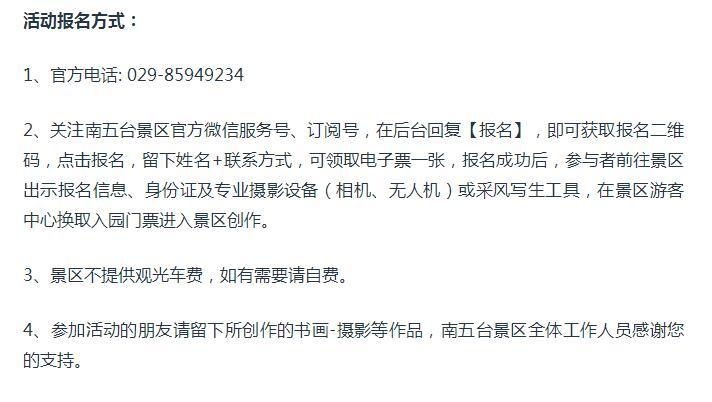本次“留影展锦绣 挥笔画美好暨第三届南五台景区写意书画展”主题活动,将从2022年11月5日持续至2022年11月20日,并向社会广泛征集摄影、书画作品,希望通过相机、画笔记录下南五台景区的秀美山色。