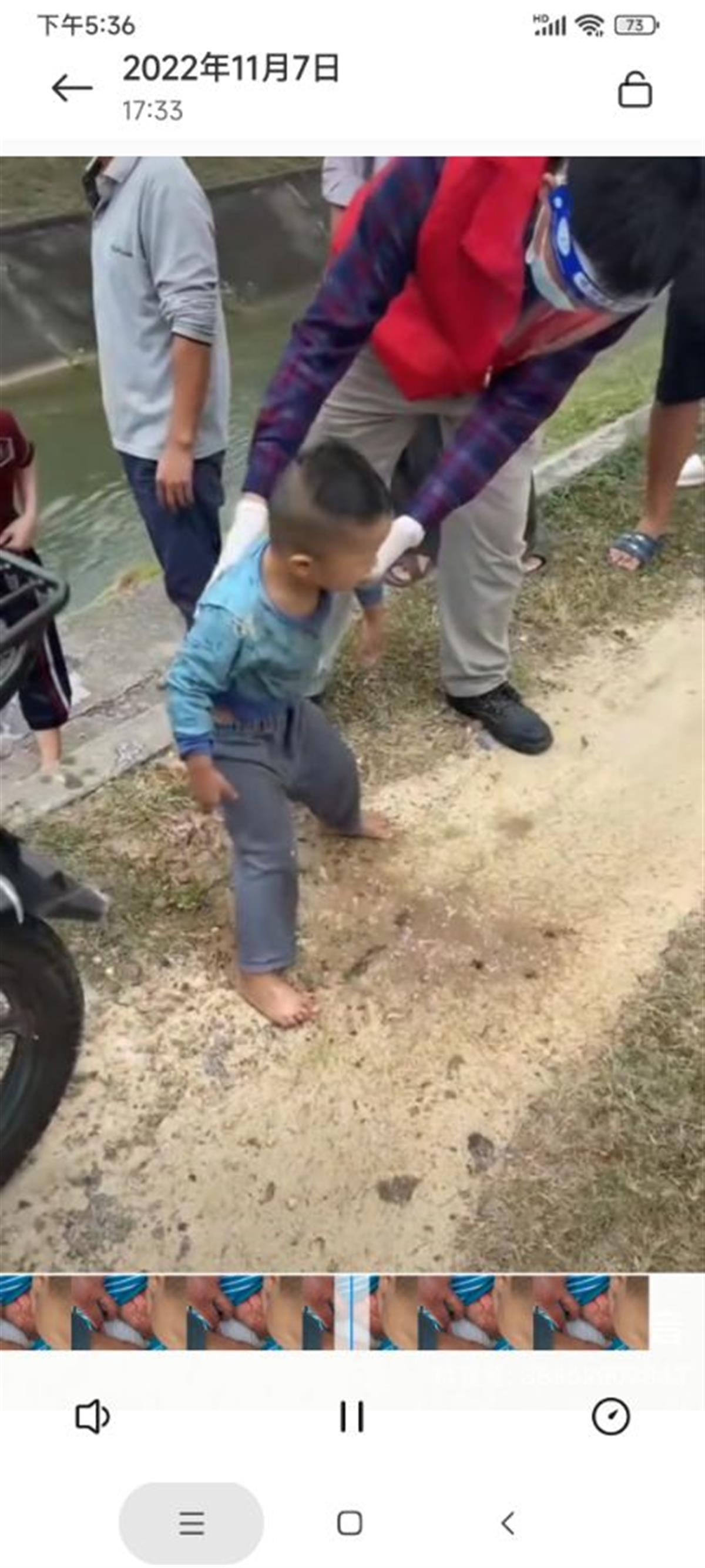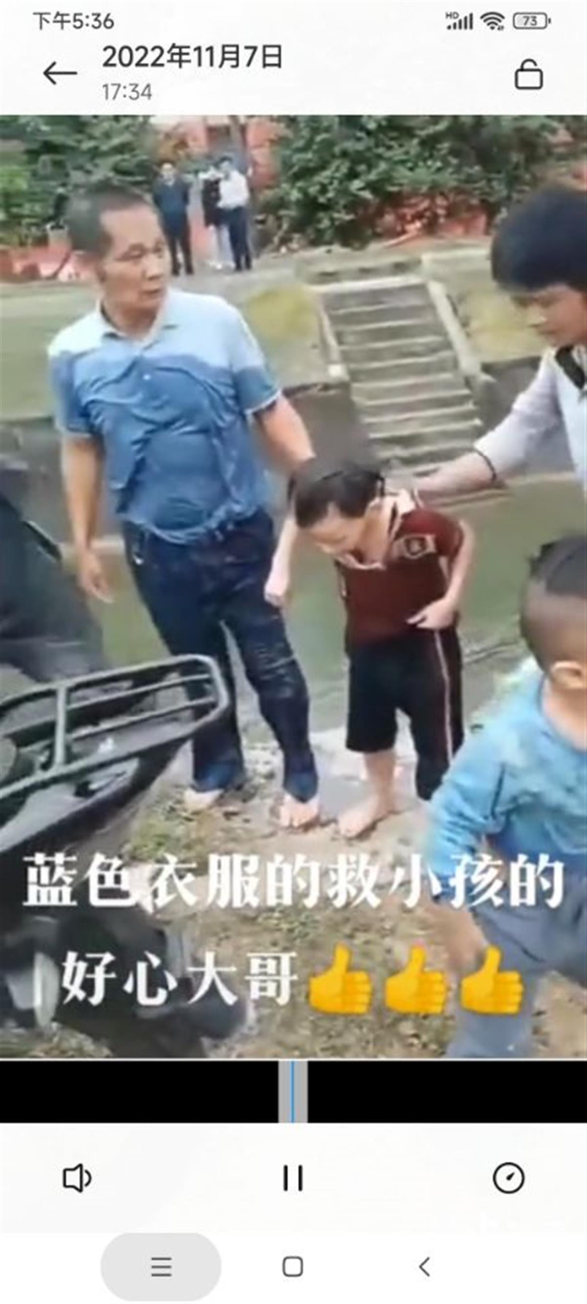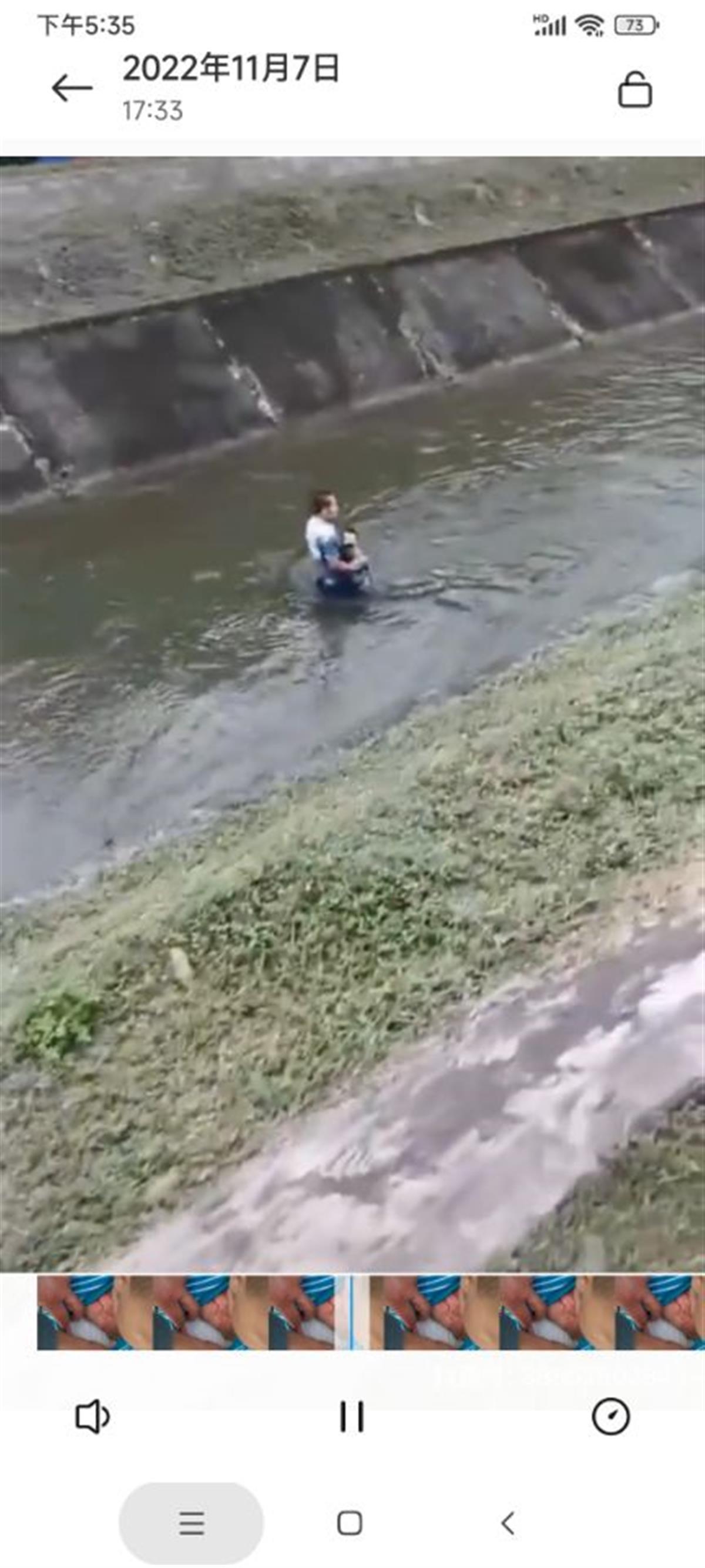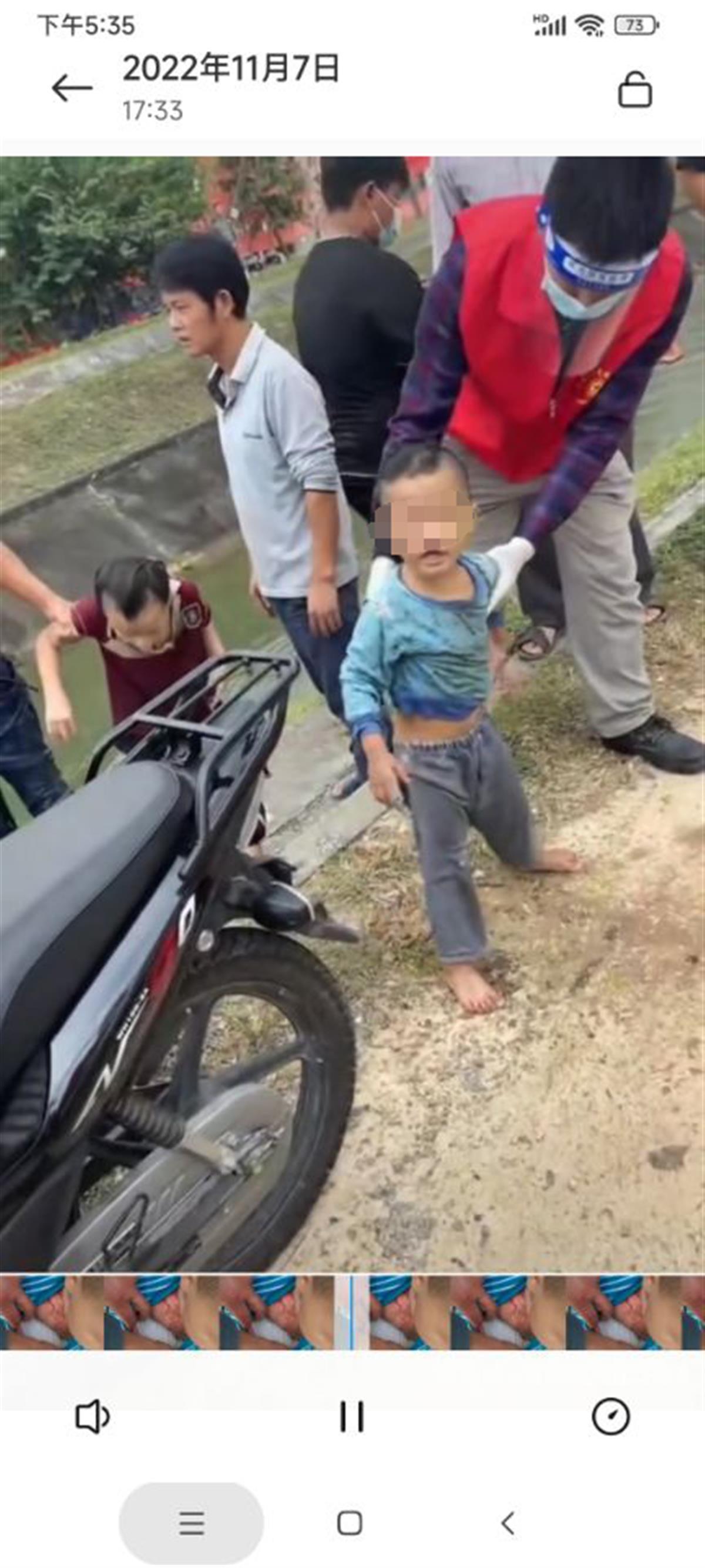视频发布者称,这是11月6日下午发生在广东茂名茂南区羊角镇大同中学门前的事情,两个孩子的妈妈在附近厂里上班,两个孩子吃过午饭后偷跑出来玩,不慎掉进河中,幸亏被好心人及时救上来。事后,被救孩子的家长带着孩子到救人的好心大哥家登门致谢。